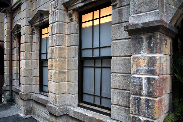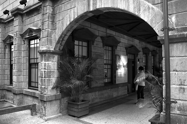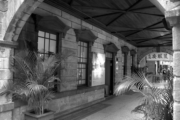 這棟建築的石材色調相當優美, 拍彩色照其實也很棒, 可惜左鄰右舍靠得很近, 車輛, 招牌與建築物完全不協調, 所以遇到這種情形, 我就改成黑白照, 一樣也 OK.